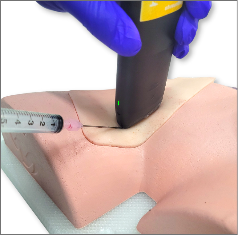 Excelente para usar pontos de referência externas tradicionais, o procedimento utilizando a técnica de Seldinger pode ser feito da forma convencional ou guiada por ultrassom.